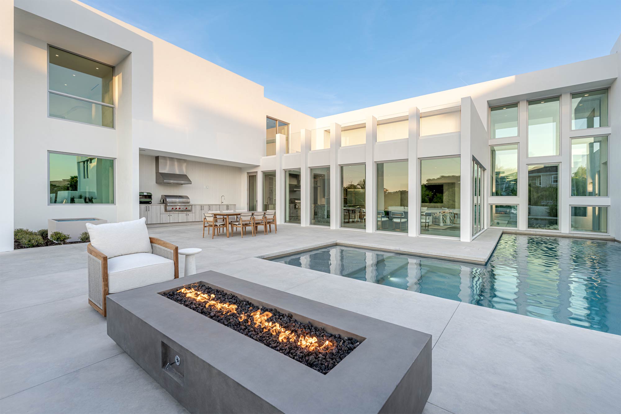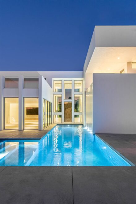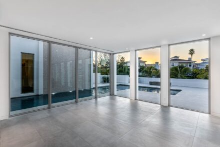 The window and door systems are a defining feature of this residence. Large format glazing establishes a seamless indoor outdoor connection while reinforcing the home’s modern geometry. Architectural photography of windows and doors requires precise control of perspective, exposure, and timing to accurately represent scale, alignment, and performance.