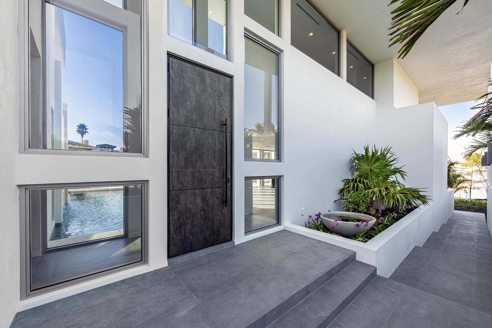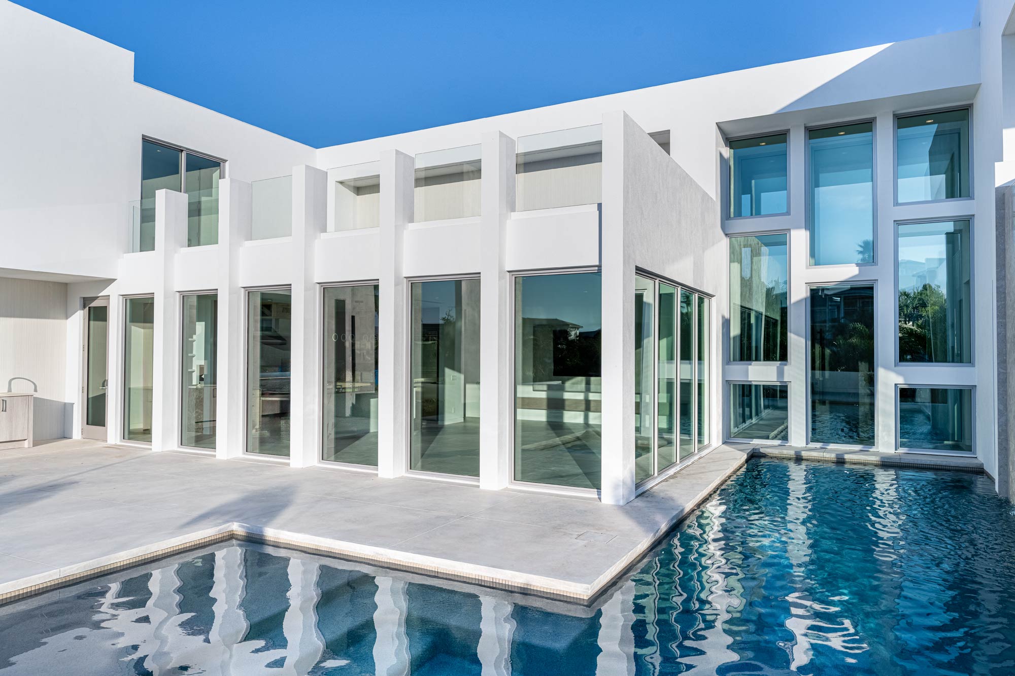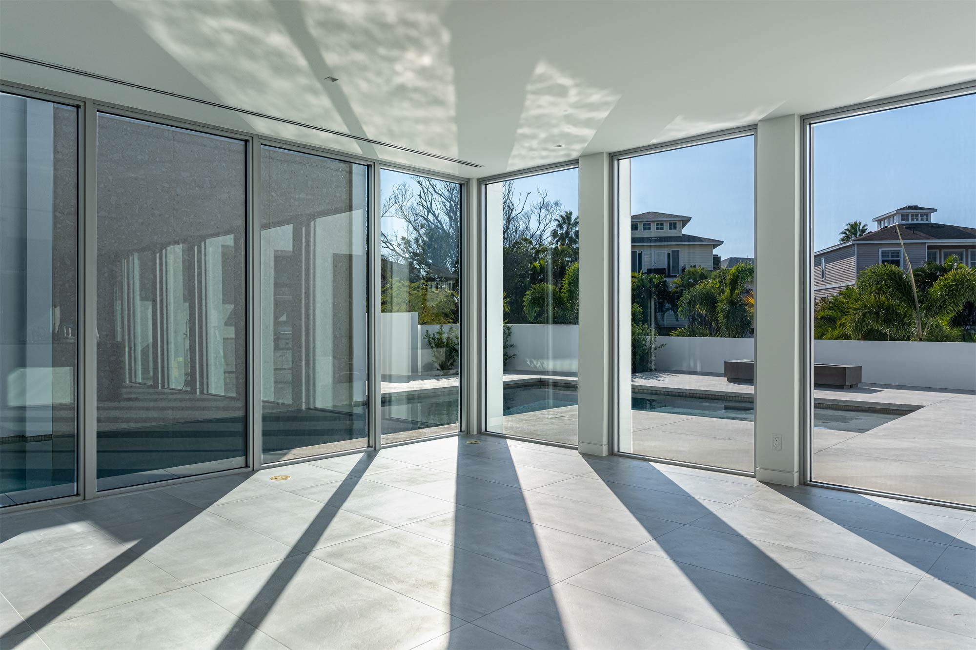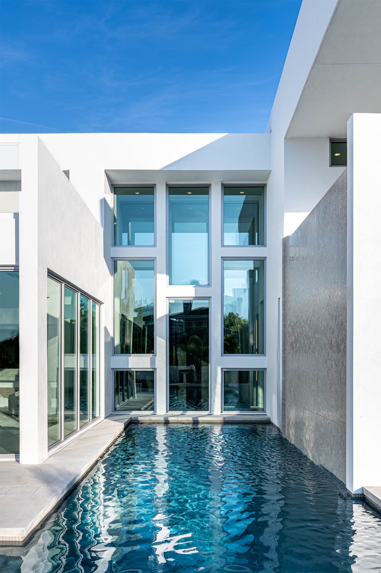 This Longboat Key residence showcases modern coastal architecture defined by clean lines, expansive glass, and a strong indoor-outdoor connection. As the architectural photographer on this project, my focus was to document specific scopes of work – windows, doors, gates, glass railing, and the front elevation vertical sunshade facade – that are critical to the architect, builder, and fabrication/installation teams. These images were created to support marketing, portfolios, and long-term brand use.