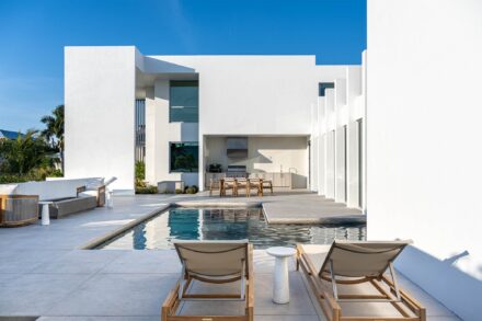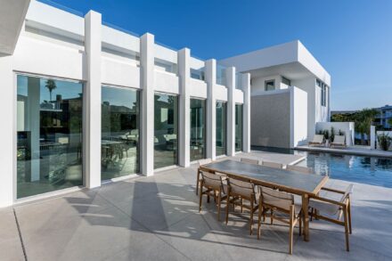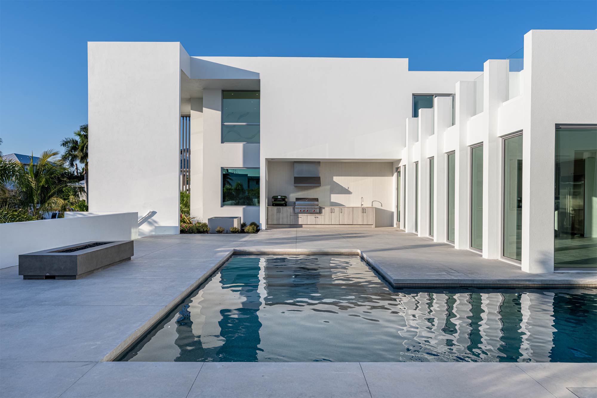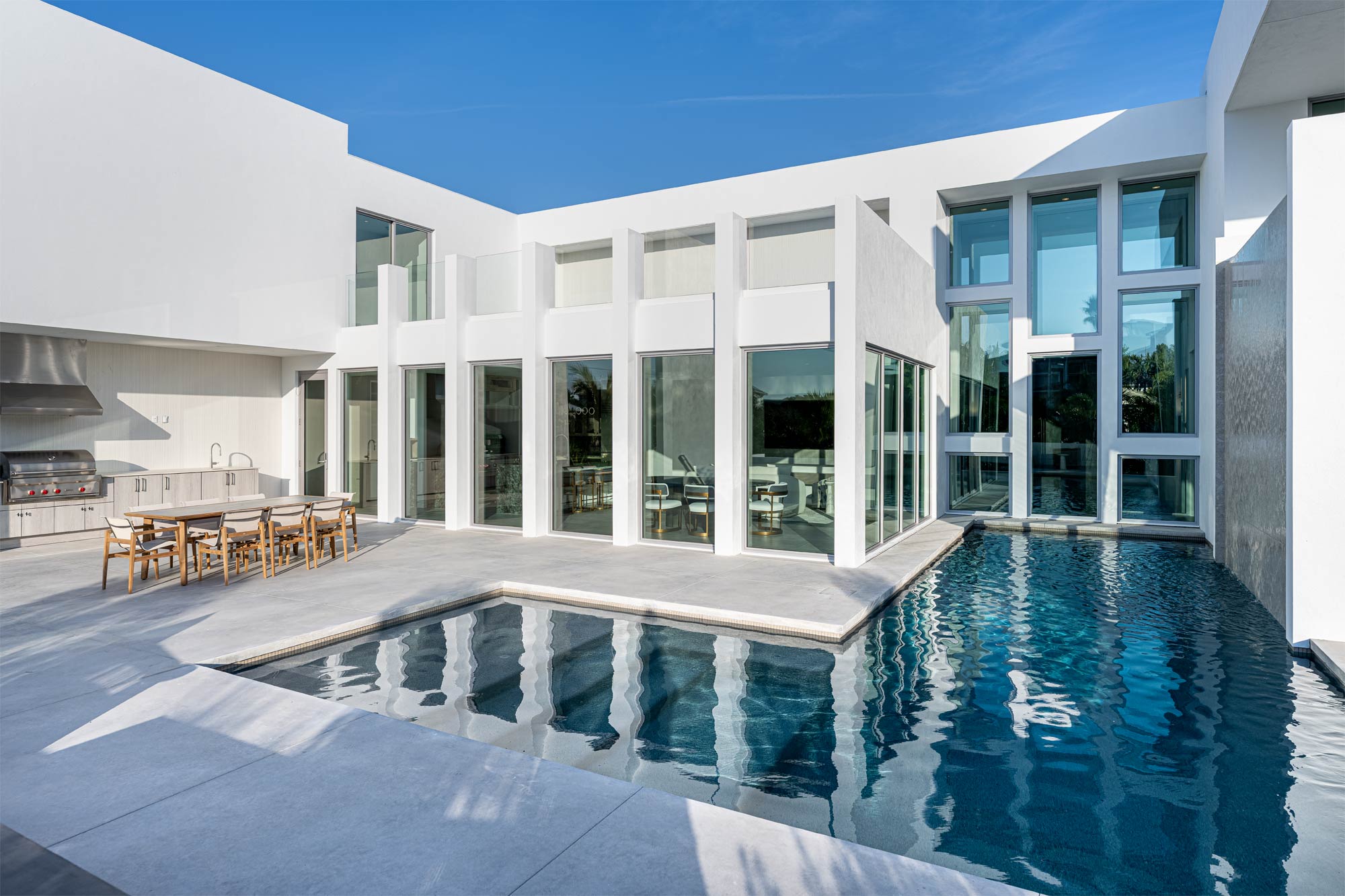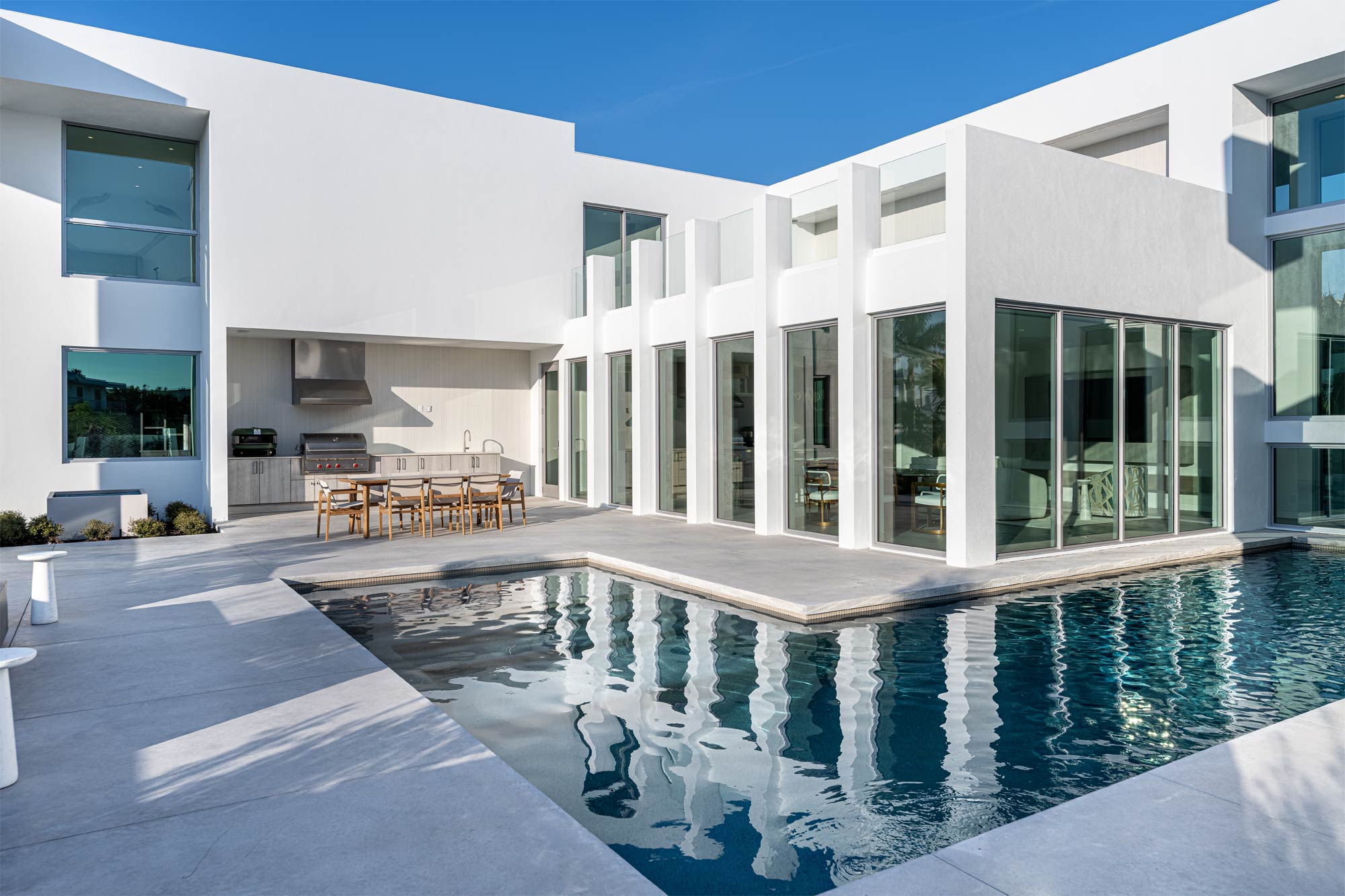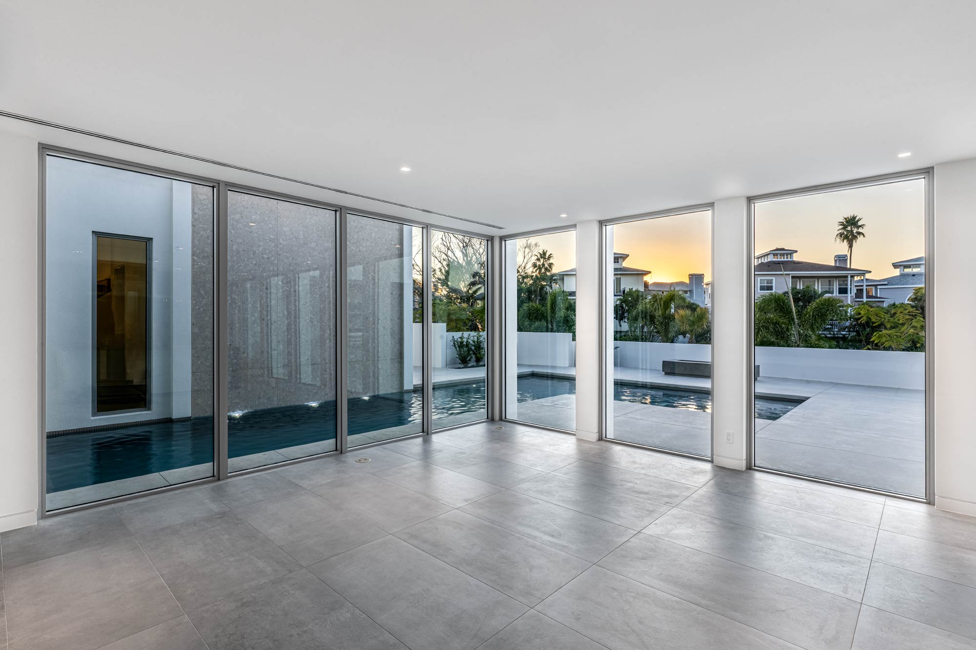 This Longboat Key residence showcases modern coastal architecture defined by clean lines, expansive glass, and a strong indoor-outdoor connection. As the architectural photographer on this project, my focus was to document specific scopes of work – windows, doors, gates, glass railing, and the front elevation vertical sunshade facade – that are critical to the architect, builder, and fabrication/installation teams. These images were created to support marketing, portfolios, and long-term brand use.