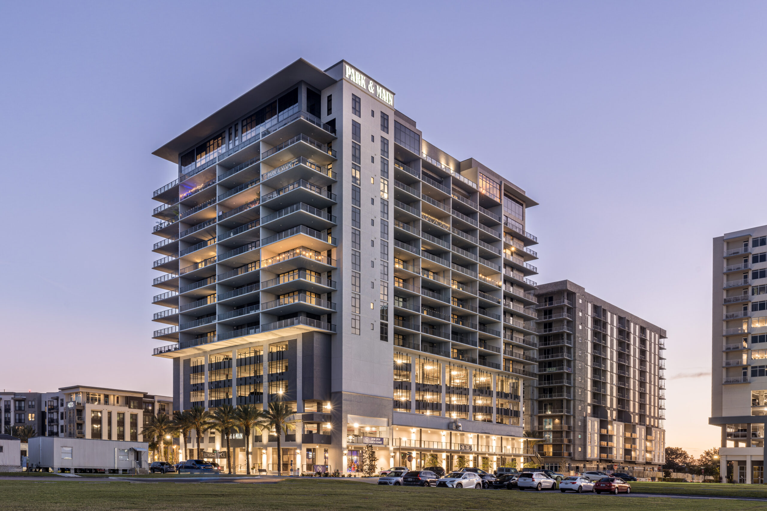One of the tallest buildings in St. Petersburg outside of downtown – the newly developed Park and Main bay view luxury apartments at Echelon City Center. This shoot showcased 17 stories of cable, vertical picket, and glass railing, a 4-sided decorative parking garage facade, and a rooftop canopy. Projects like Park and Main Bay View highlight how important it is to document not just the overall structure, but the individual elements that define it. From railing systems to facade treatments and rooftop features, each detail contributes to the final result and deserves to be captured with intention.