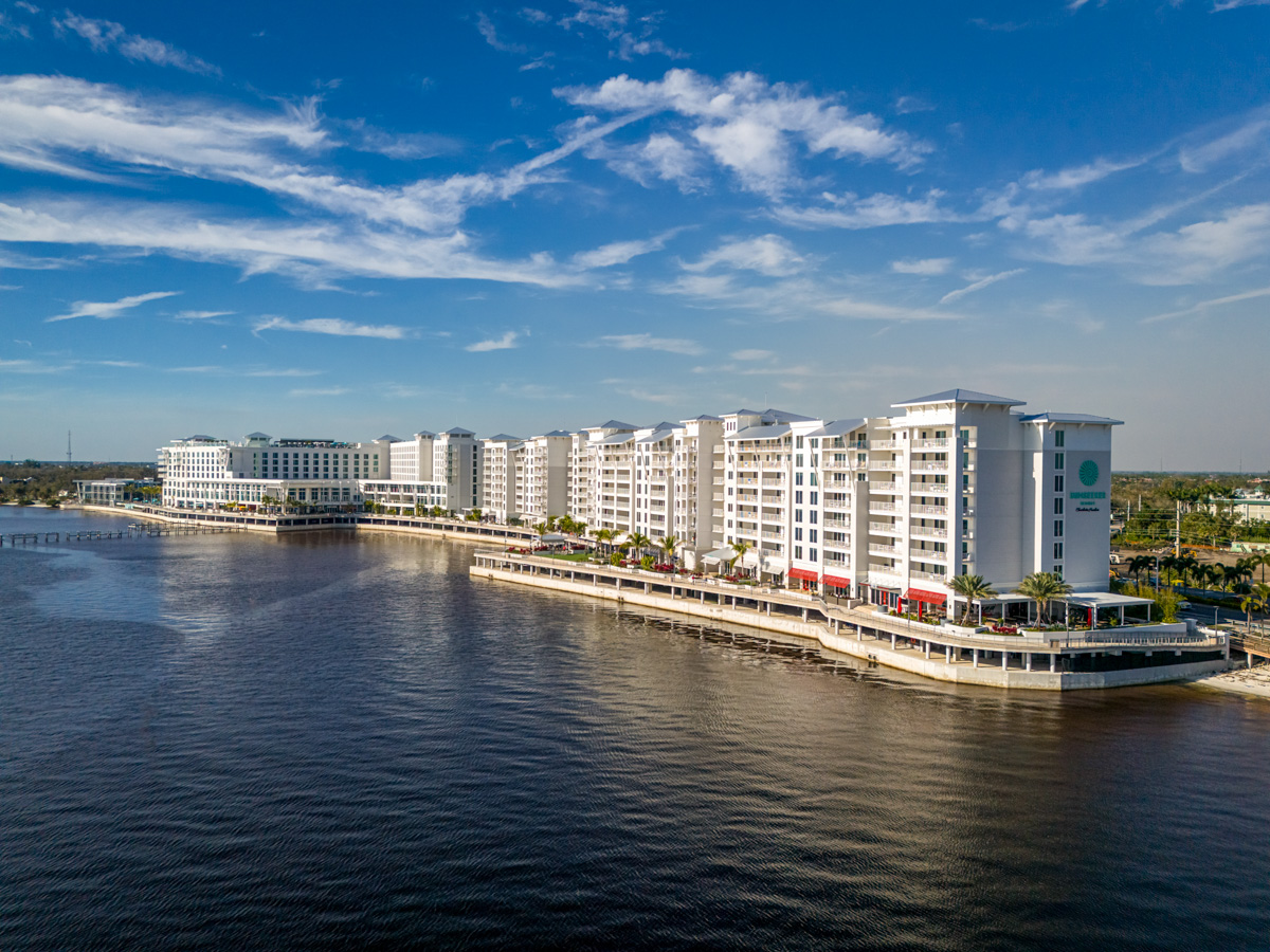The Sunseeker Resort, located between Sarasota and Fort Myers on Charlotte Harbor, boasts impressive architectural details. The resort, owned by Allegiant Travel Company, is a remarkable addition to the area. Suffolk Construction and Florida Premier Contractors served as the project’s builders, while Steelman Partners and L2 Studios served as the Architects and Interior Designers. BBM Structural acted as the engineering firm for the project. Mullet’s Aluminum was responsible for fabricating and installing the multitude of architectural features shown in this post.